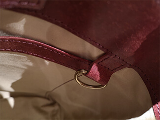 持ち手の部分と本体を繋ぐ小判カン、留め具のギボシは真鍮製です。